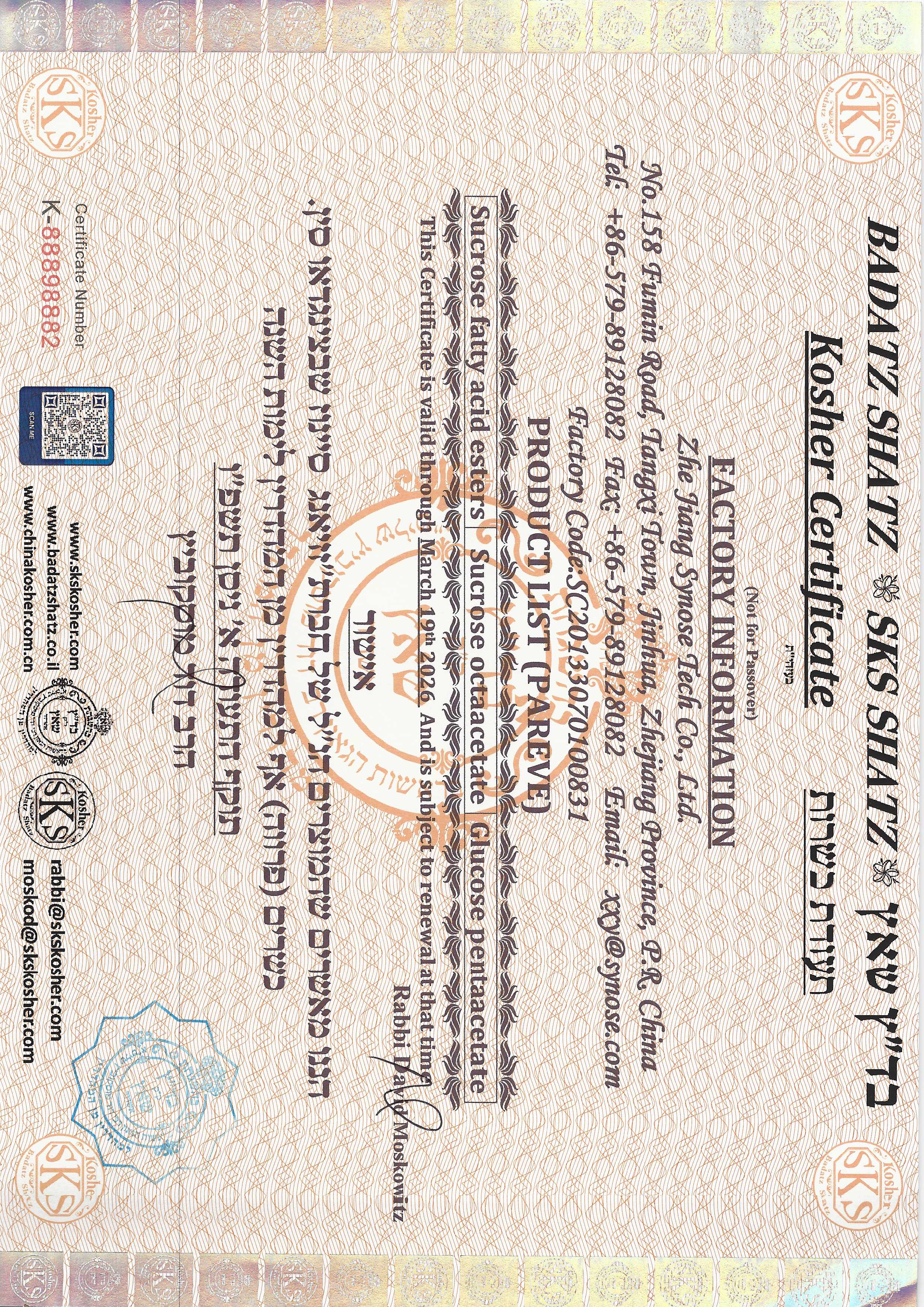 SKS KOSHER证书